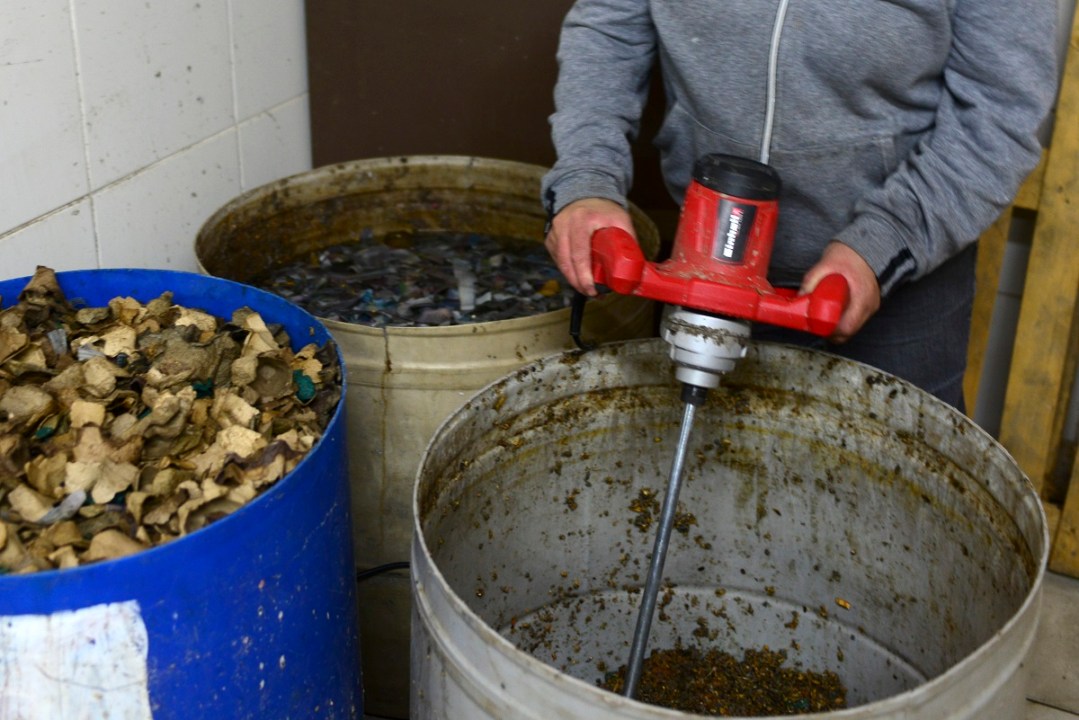 En un comienzo, las mujeres pidieron la colaboración de la escuela técnica Nehuen Peumán que construyó una prensa de madera para comprimir el material. Con el uso intensivo, se rompió y mandaron a hacer otra de hierro.