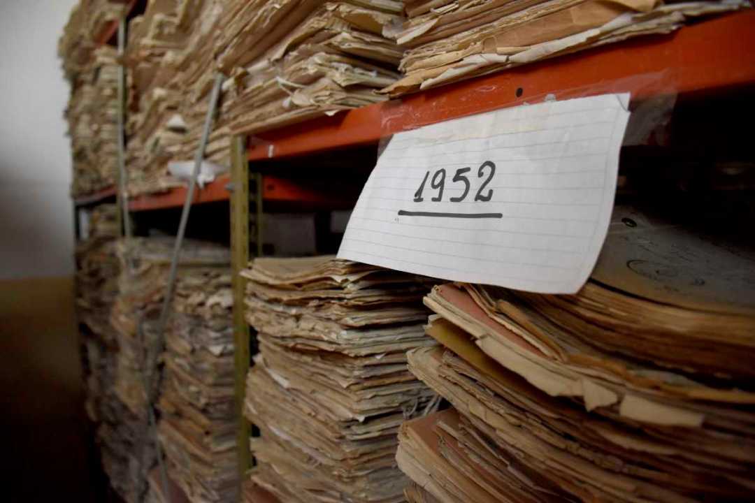 «Lesa» está alejado de las celdas comunes, pegadas y pequeñas, tiene una ventana grande y el piso como tablero de ajedrez. Este sector es ahora parte del ministerio de las Culturas, dirección de Patrimonio Cultural. Horacio y su compañero Gustavo buscan en la estantería el año 1952.