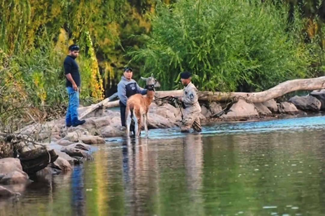 A plena luz de la tarde del viernes, en el río Limay de Neuquén, un guanaco sorprendió a quienes paseaban por la costanera. La escena fue insólita y preocupante: el animal había caído al río y, desorientado, estaba intentando salir. Lo que siguió fue un operativo de rescate que terminó con el ejemplar a salvo y, días después, de regreso en su hábitat natural.