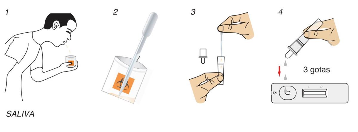 – Luego de retirado el hisopo y colocada la tapa, se vierten unas gotas del líquido conteniendo la muestra (tiene dosificador) en un recipiente de prueba (casette) que revelará el resultado.