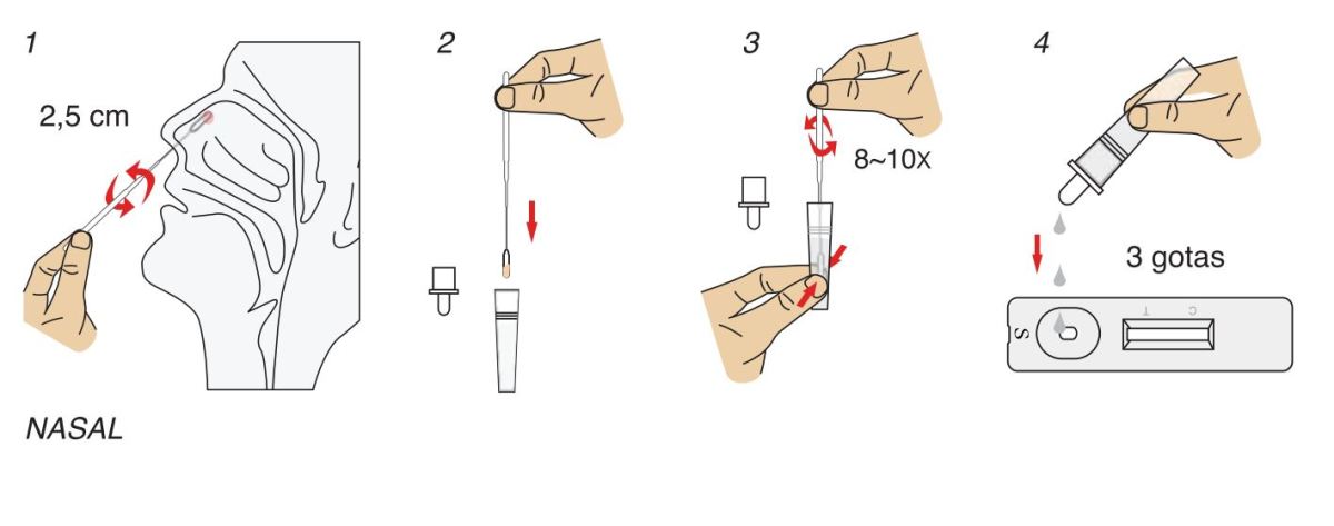 – El hisopo estéril debe entrar recto en el orificio nasal, y en ningún caso se debe forzar al introducirlo, debe entrar más o menos unos dos centímetros en la nariz. Girarlo unos segundos (unas cinco veces) contra las paredes nasales, para asegurar la toma de muestra correctamente.