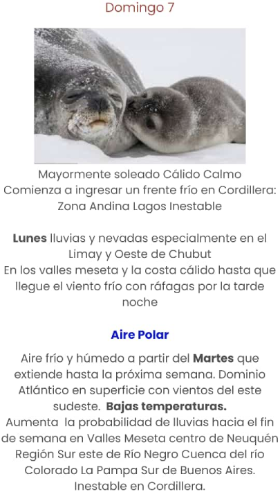 Además, se prevé inestabilidad en la Cordillera durante este período. Recomiendan que, los residentes de Neuquén y Río Negro, tomen las precauciones para un cambio drástico en el clima, con temperaturas más bajas y la posibilidad de precipitaciones significativas en los próximos días.