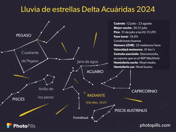 La que se podrá ver en el hemisferio sur, en Neuquén y Río Negro, es la lluvia de estrellas denominada “Delta Acuáridas”. Su periodo ya comenzó, el 12 de julio y se extiende hasta el 23 de agosto. La mejor noche para su visualización va del 30 al 31. Esa madrugada será el momento en que más meteoros por hora se van a poder observar.