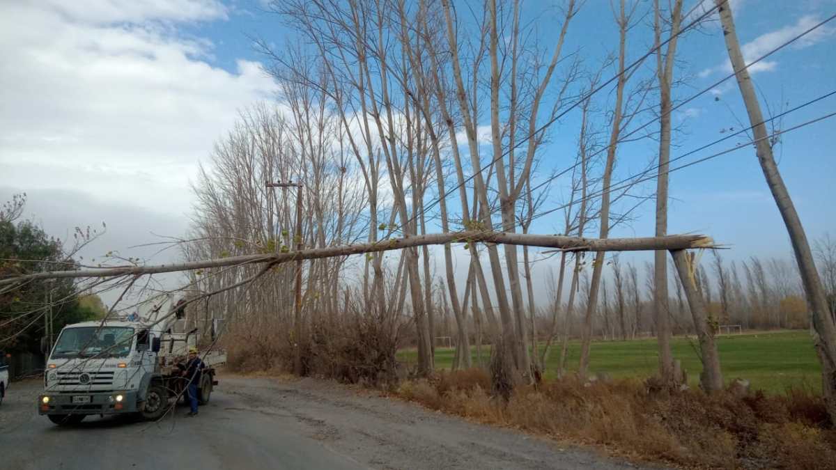 En el caso de General Roca, describieron que «alrededor de las 14:30 se produjo un corte en el servicio de la zona norte de la ciudad producto de la caída de álamo de gran porte sobre la línea de media tensión».