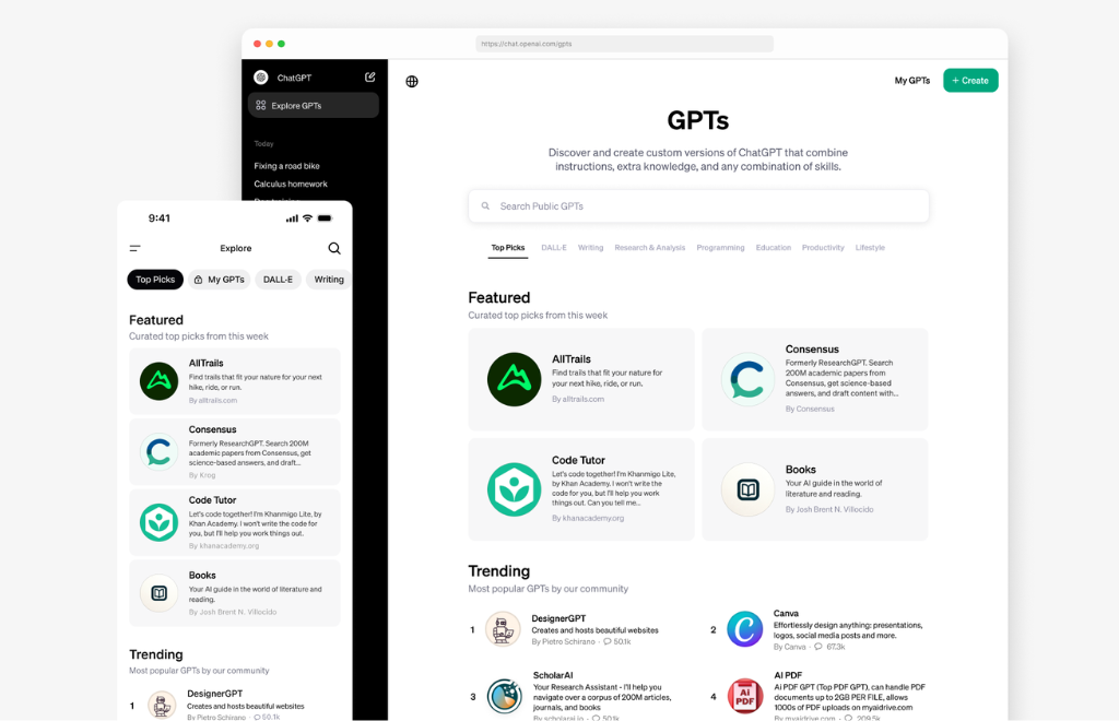 El 10 de enero anunciaron la apertura de la prometida la tienda online de GPTs. Miles de bots diseñados para distintas necesidades ahora están al alcance de cualquier persona o empresa que tenga la suscripción de ChatGPT Plus. Desde ayuda para planificar tu próximo trekking por la montaña hasta un asistente académico para revisar tu tesis.