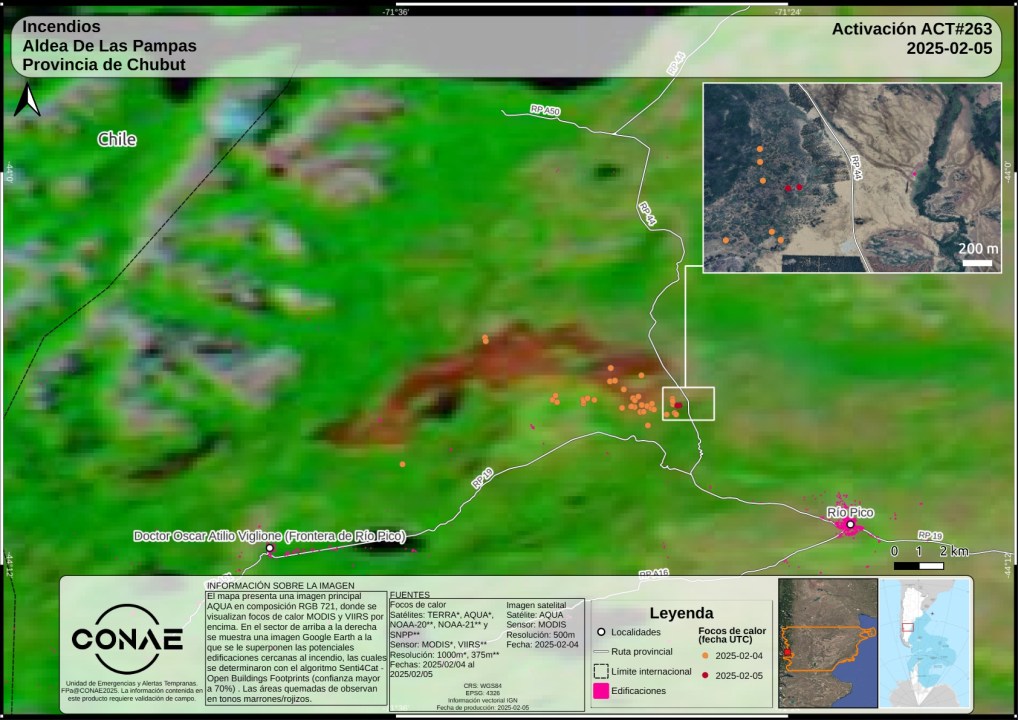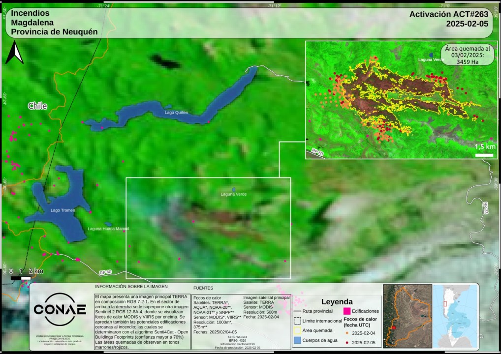 Es por esto que el organismo se encuentra generando información sobre estos focos de calor «para indicar qué está activo y qué no, y cuando llegan los satélites de mayor resolución, podemos calcular con precisión el área afectada».