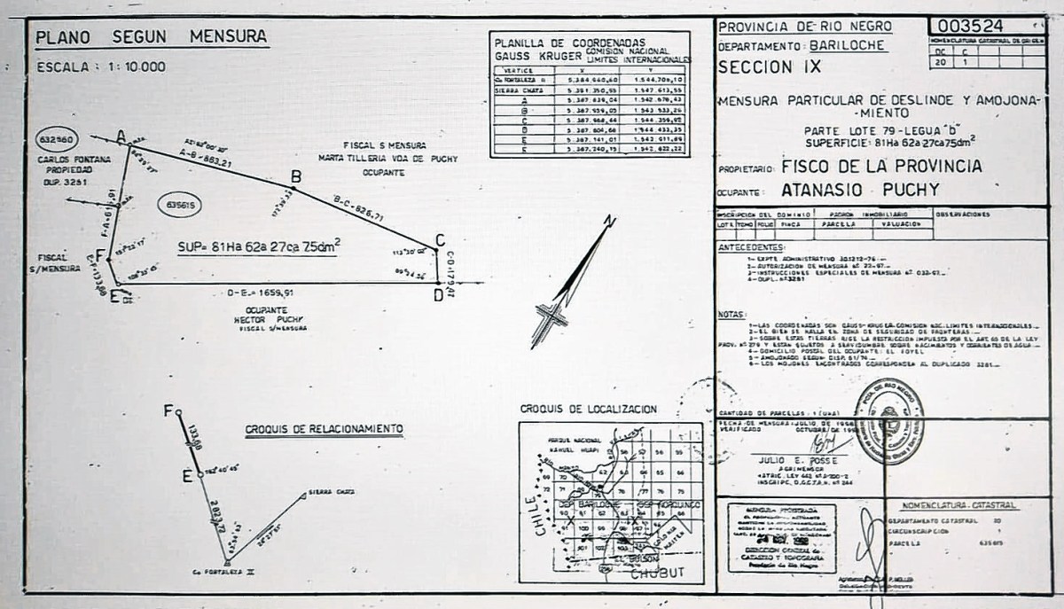 De hecho, hay en Catastro de Río Negro registros de asentamientos a nombre de Atanasio y Héctor Puchy, y de Marta Tillería viuda de Puchy.