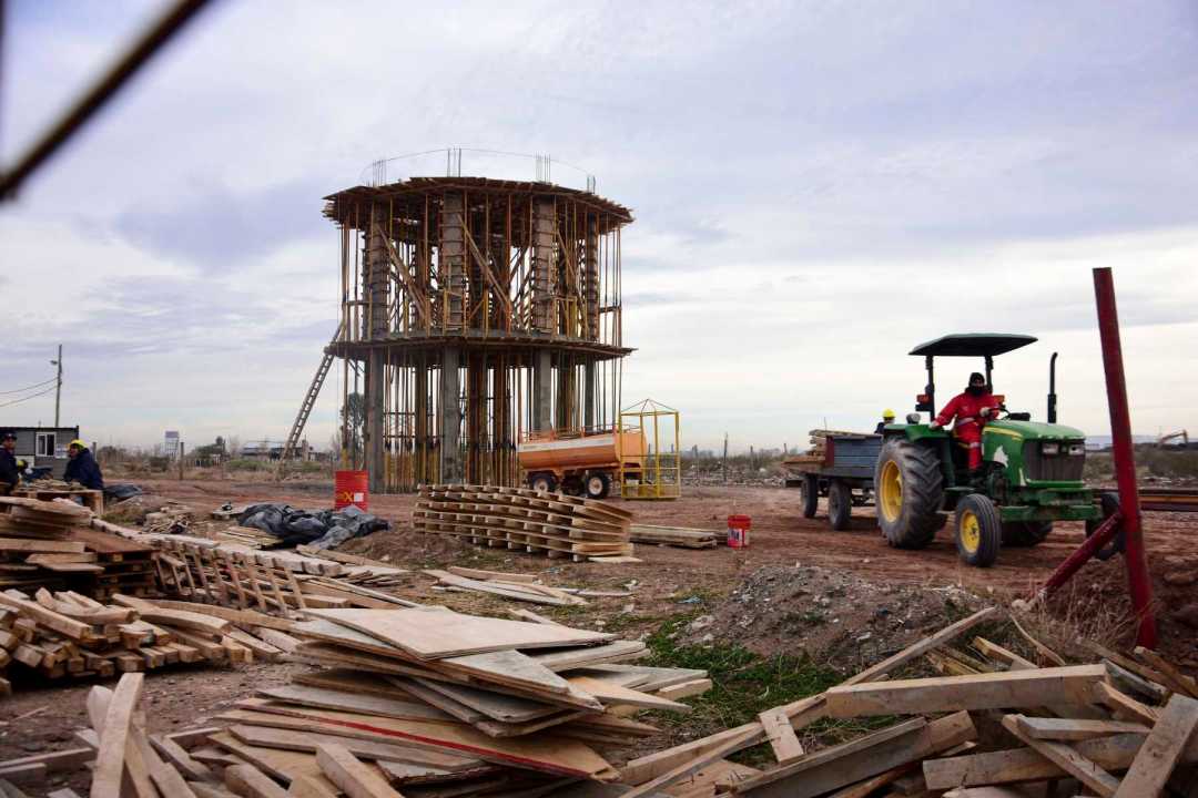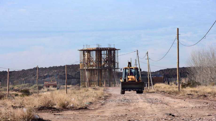 Cuando Diario RÍO NEGRO llegó hasta el lugar de los trabajos, una retroexcavadora y un camión estaban en plena tarea en el predio del basurero petrolero (se nota a simple vista porque el cerco perimetral de cemento es discontinuo) mientras a pocos metros, del otro lado de la calle interna, los operarios de la cuadrilla contratada por el municipio, se ocupaba de la ejecución de la torre para instalar el tanque de agua.