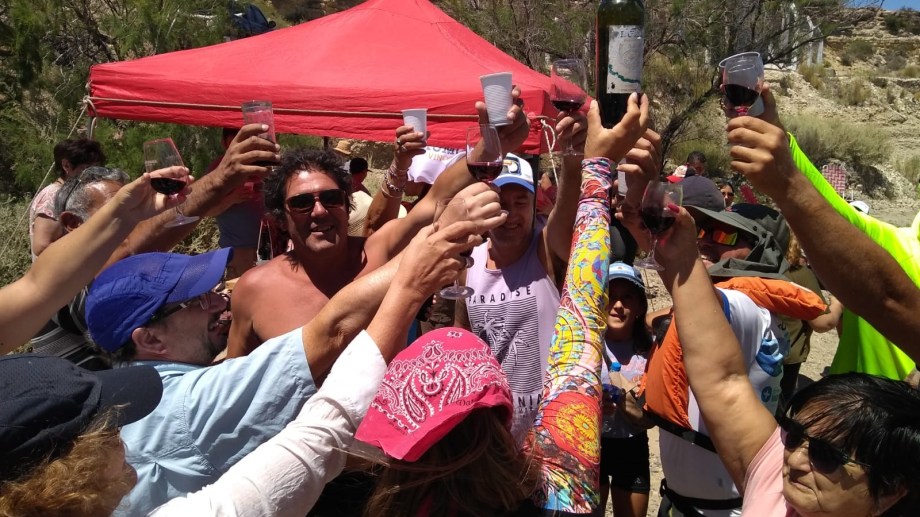 Una botella de vino bien en lo alto, cientos de brazos arriba y un grito masivo de alegría por la tarea coronada con éxito en el río Colorado. Así se festejó el rescate de vinos pampeanos que fueron sumergidos hace ocho meses, en un lugar de privilegio, ubicado aguas abajo de la represa de Casa de Piedra.