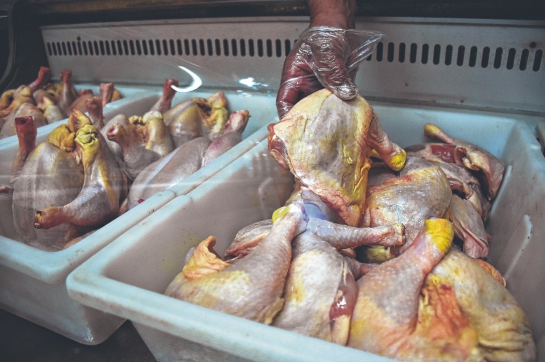 En el local también producen hamburguesas y albóndigas. El día que se hizo se esta nota ya había recibido un aumentó en la caja de pollo de $250.