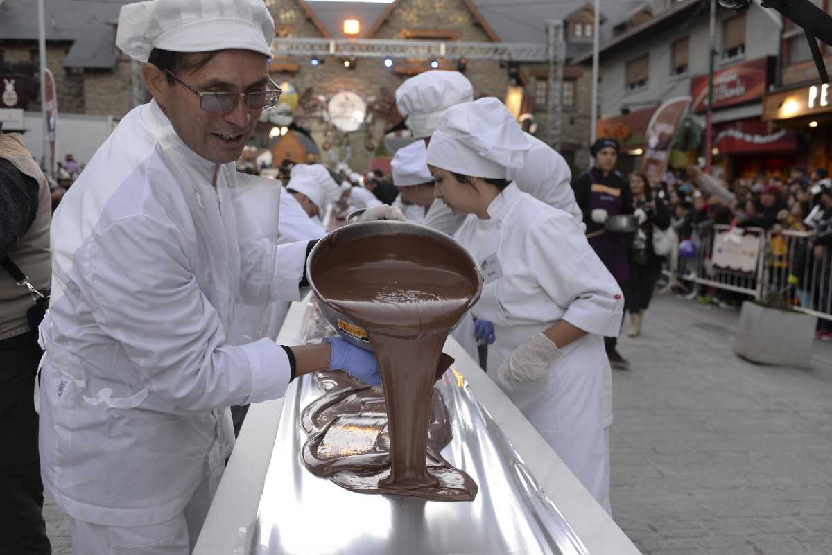 Para hacer un poco de historia, Bariloche hizo la primera barra de chocolate gigante en 2012. Allí se midieron 100,02 metros y esa proeza la hizo entrar en el Libro de los Récord Guinness.