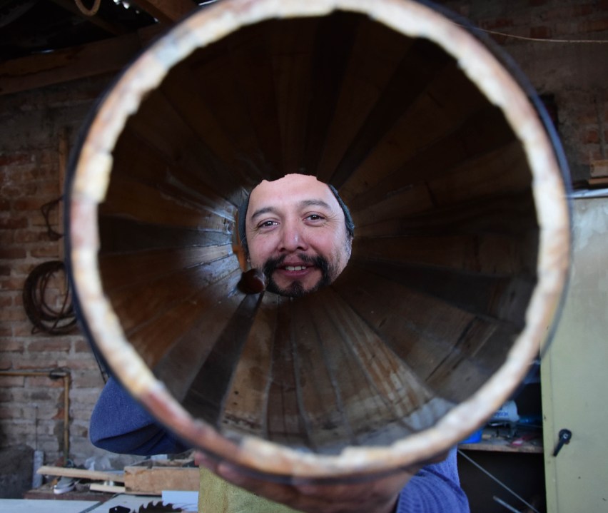 Las tablas de madera paraíso se transforman en las manos de Pablo Limonao en un tambor de candombe. El proceso es completamente artesanal, donde combina la carpintería con la soldadura. El percusionista de Roca jamás pensó que el oficio de trabajar la madera que heredó de su padre sería fundamental para luego crear los instrumentos con los cuales disfruta de este género musical y también da clases.