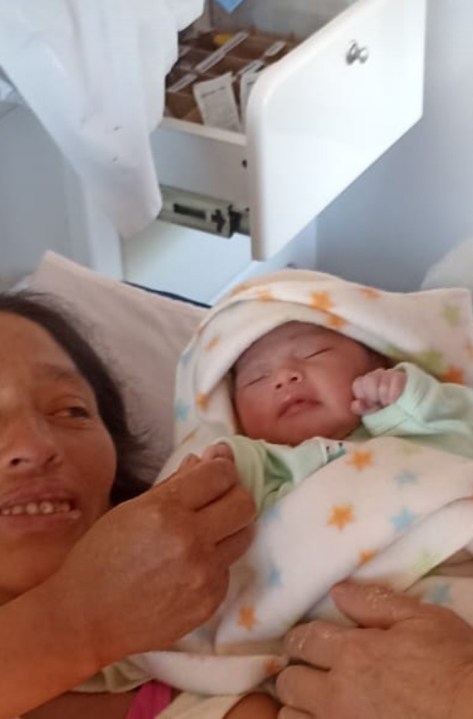 A mitad de camino, la paciente ya había dilatado por completo. Tenía 10 centímetros, ya no había más tiempo y el período expulsivo había empezado. El equipo improvisó con los insumos disponibles.