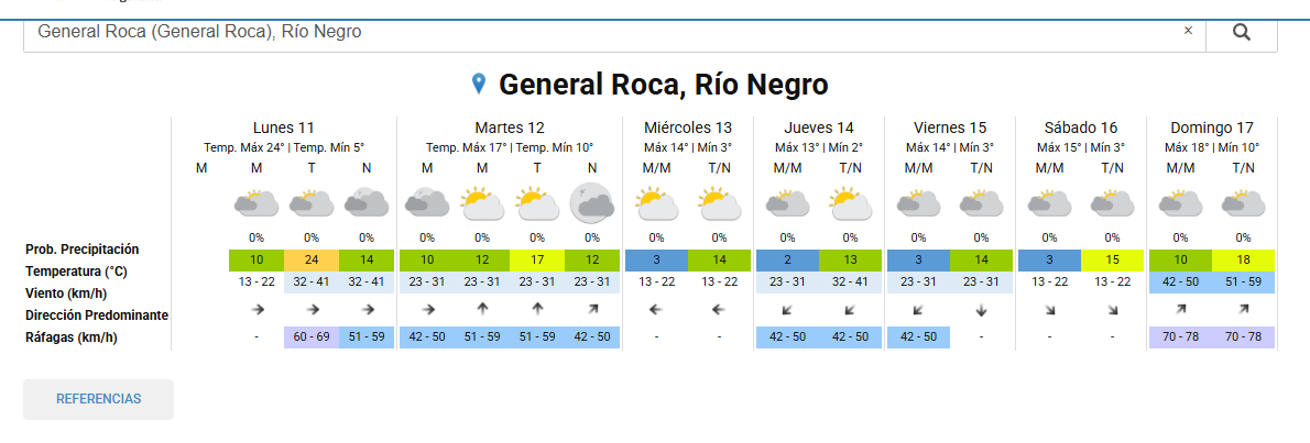 En Roca el viento dirá presente este lunes: ráfagas de más de 60km/h