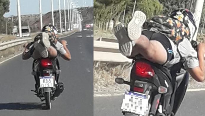 El medio Centenario Digital informó que el recorrido realizado por el joven fue entre Centenario y Neuquén sobre una motocicleta 110 cc. Los automovilistas que transitaban observaron al conductor manejar acostado sobre su rodado.
