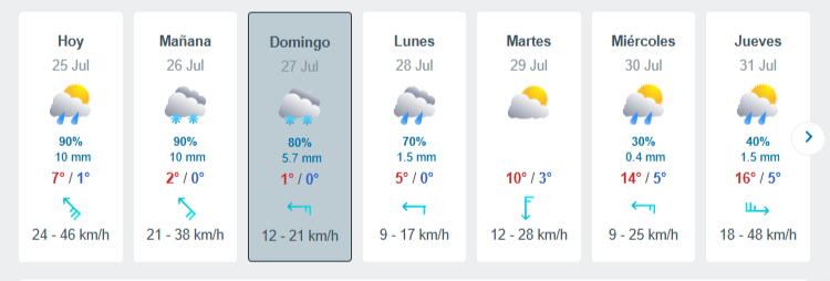 Luego de esto, llegará la tan esperada nieve el sábado. Las nevadas comenzarán durante las primeras horas del día y se extenderán hasta la madrugada del domingo. Las temperaturas oscilarán entre los 0°C y los 2°C.