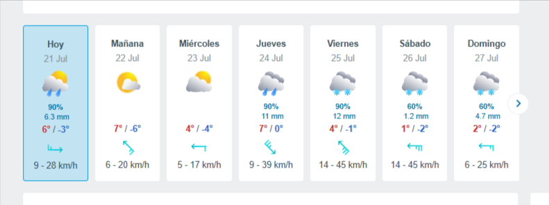 Será un lunes marcado por las bajas temperaturas, que oscilarán entre los -3°C y los 6°C. Llegando al fin de semana, si podría haber fuertes nevadas.