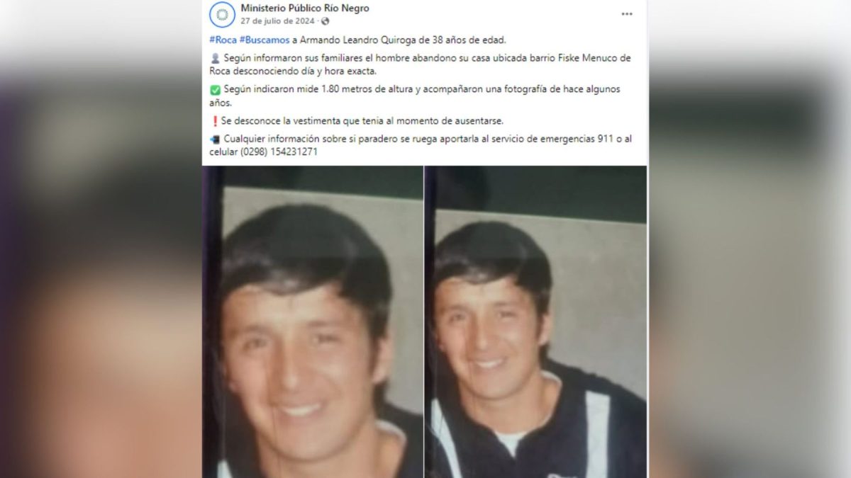 Quiroga salió ese jueves de su casa ubicada en barrio Fiske Menuco sin decir cuál era su destino y nunca más volvió. Transcurridos los días y sin poder contactarlo, su familia decidió realizar la denuncia por desaparición en la comisaría.