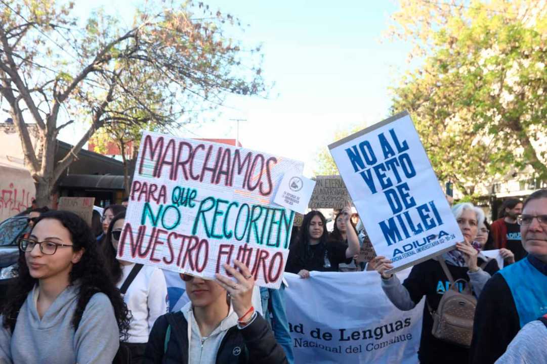 No solo estudiantes, participaron docentes, no docentes y autoridades de la Universidad Nacional del Comahue (UNCo), Universidad Nacional de Río Negro (UNRN), el Instituto Patagónico de las Artes (IUPA) y el Instituto de Formación Docente Continua (IFDC). Y ellos se sumaron los gremios de la CTA y CGT, Unter, ATE, Asspur, Uocra y la UTEP, con la CCC y Movimiento Evita. Todos reunidos por el mismo objetivo: «Defender a la educación pública».
