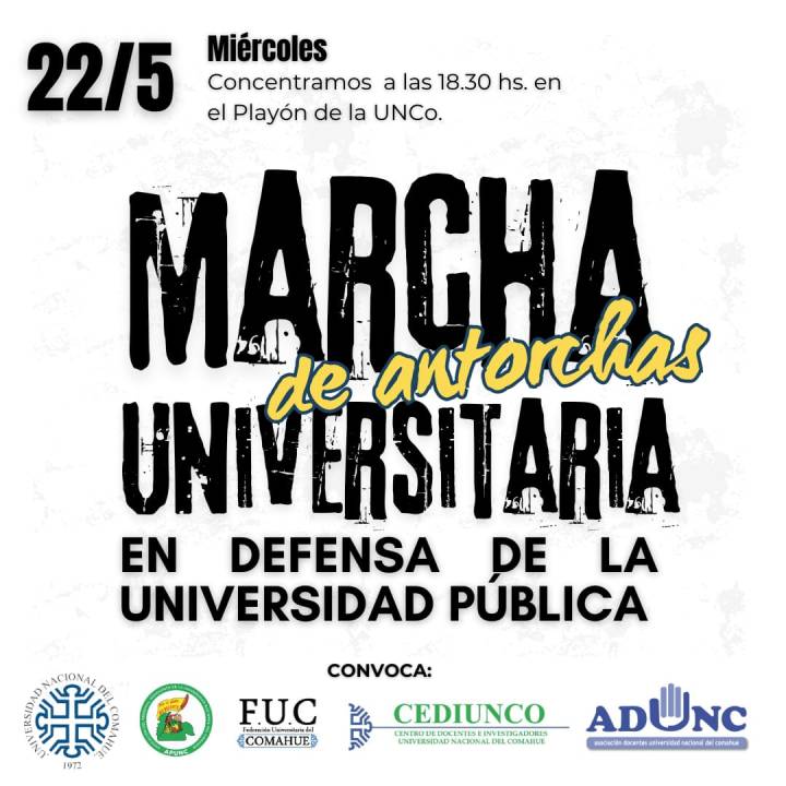 Desde los sindicatos Adunc, Cediunco, Atunrn, Adiupa, Sitraiupa, Sidunrn y Apunc marcharán por las calles de la ciudad de Roca en defensa de la educación pública una vez más.