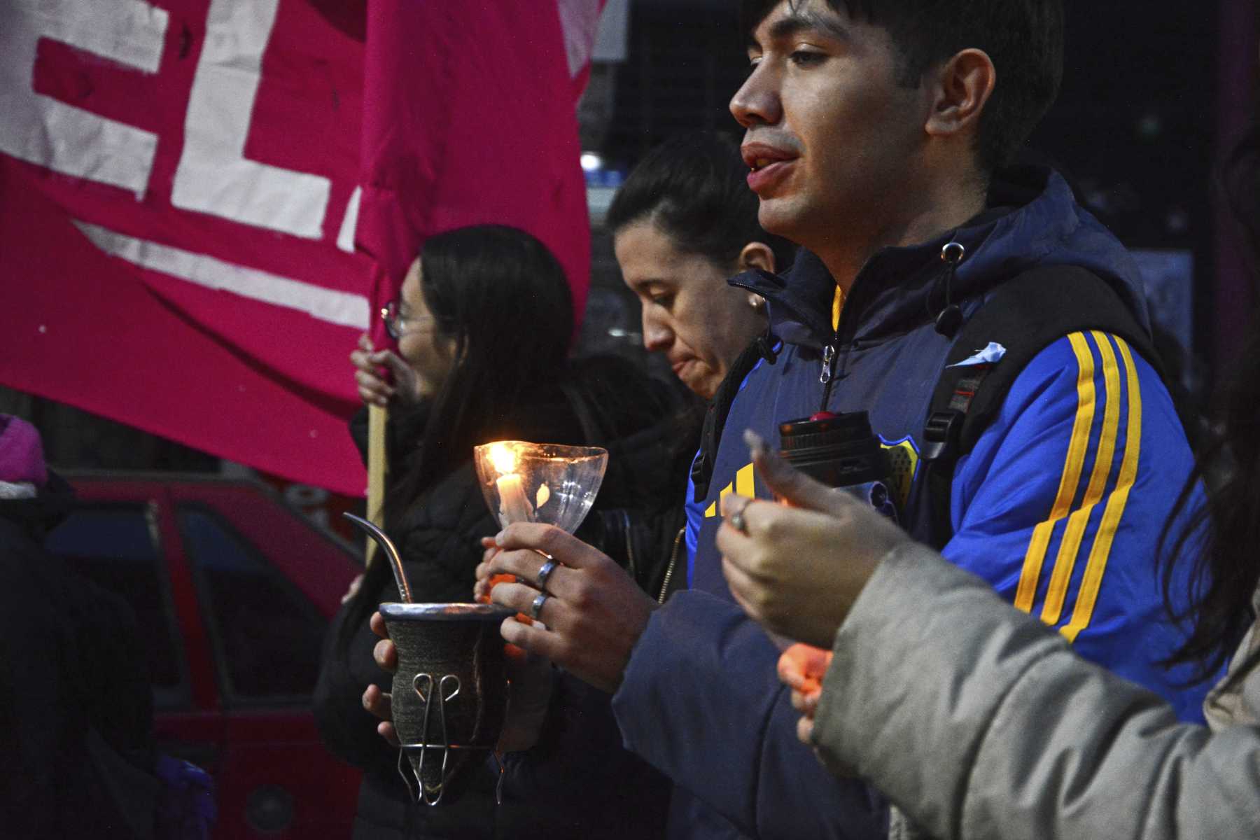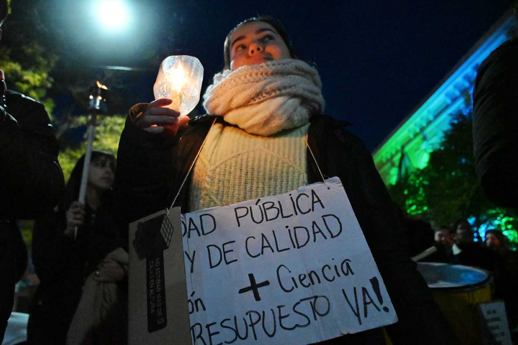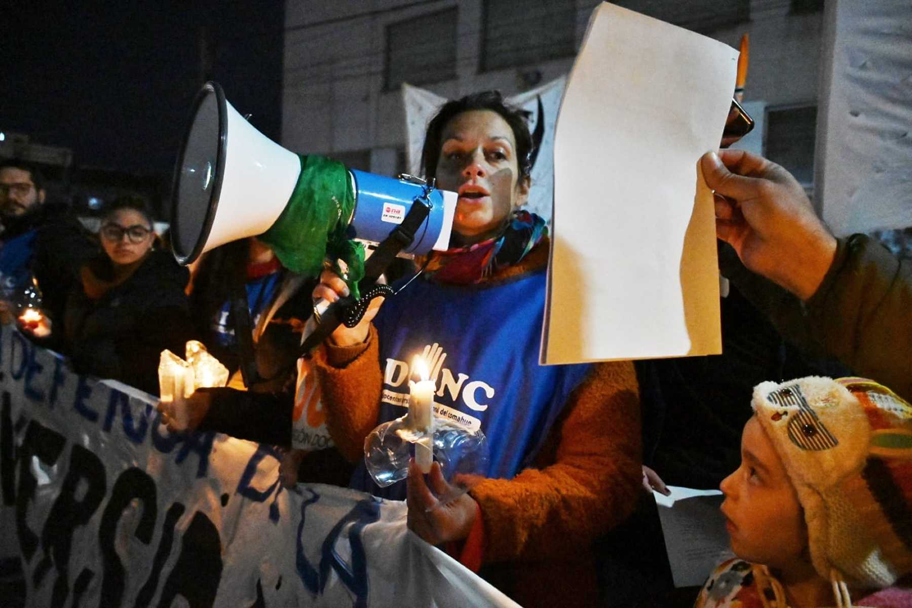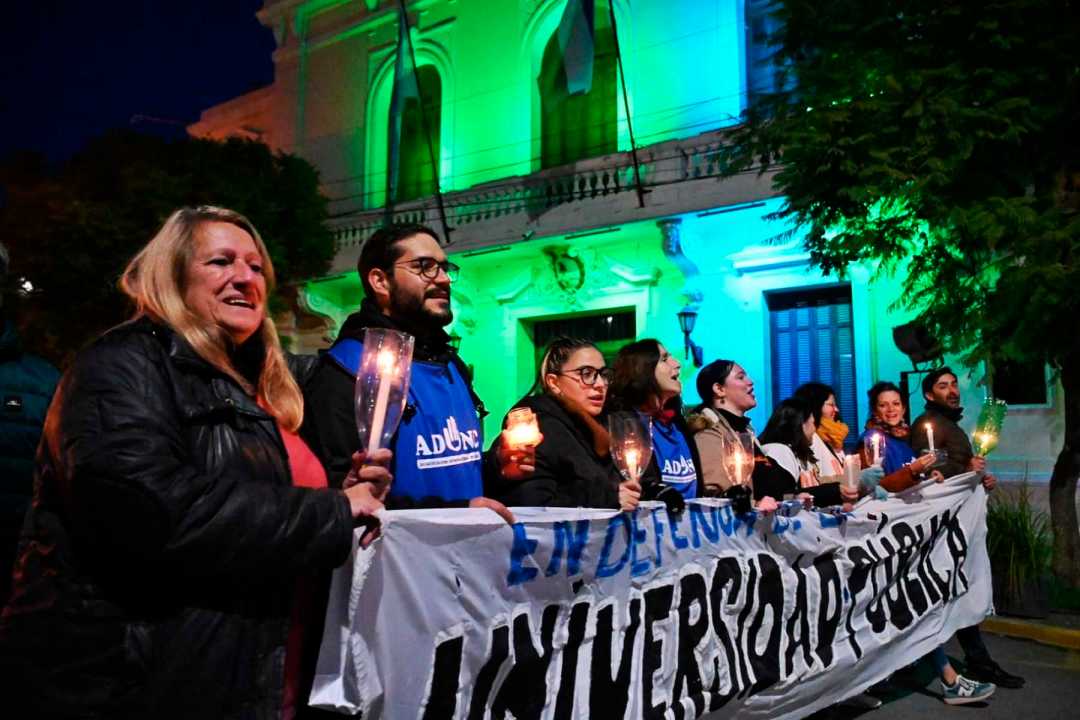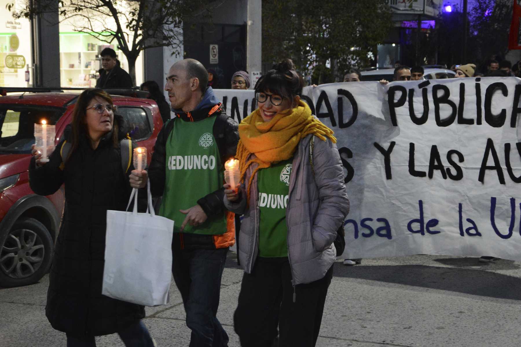 Docentes, no docentes, estudiantes y organizaciones sociales conformaron una larga columna con velas en mano y carteles en reclamo por el recorte universitario.