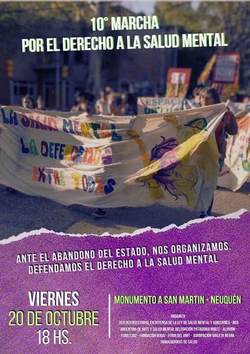 Hoy se realizará la décima marcha por el derecho a la Salud mental en el monumento a San Martín, en Neuquén. «Ante el abandono del Estado nos organizamos. Defendamos el derecho a la Salud mental».