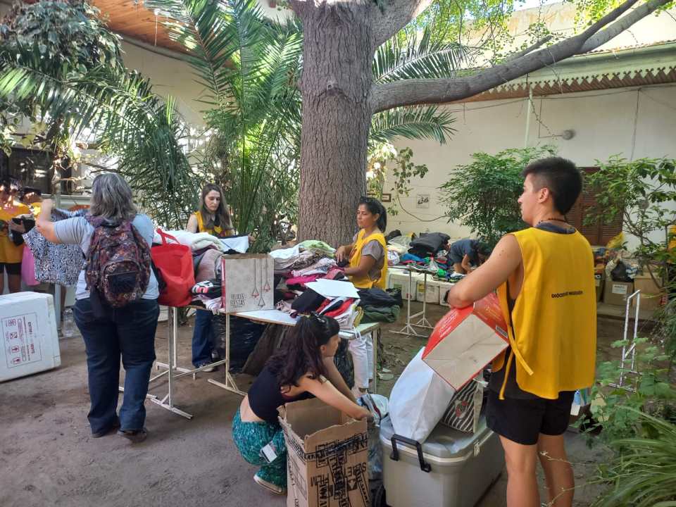 Mientras tanto, en el patio de la Catedral, decenas de servidores clasificaban ropa, juguetes y alimentos que se habían recolectado gracias a la generosidad de la gente.