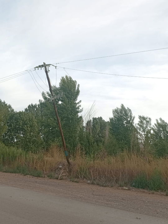 Según informó Ederesa, después de las 18.30 un álamo de importantes dimensiones se derrumbó en un sector entre las calles Jacob Retamal y Acceso Bilo en Allen y afectó a la red que abastece al servicio de agua de la localidad.