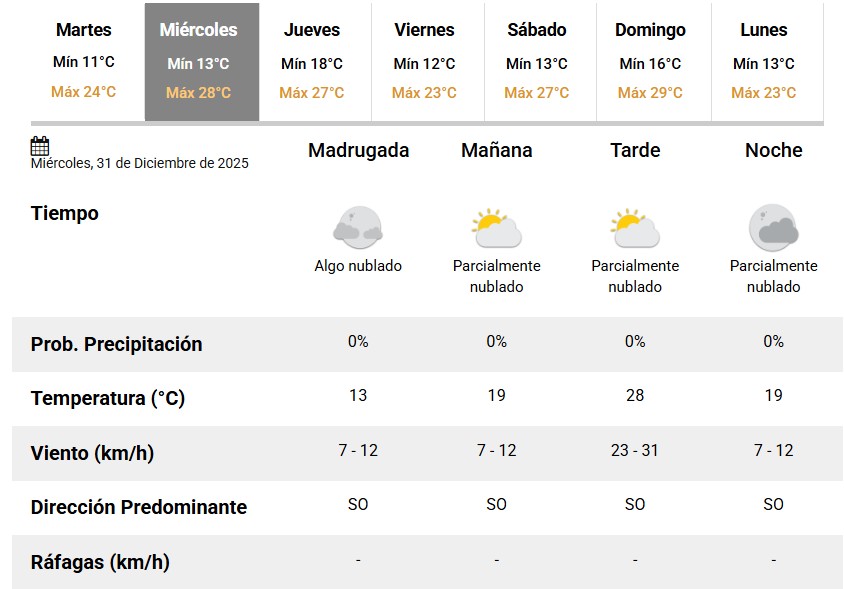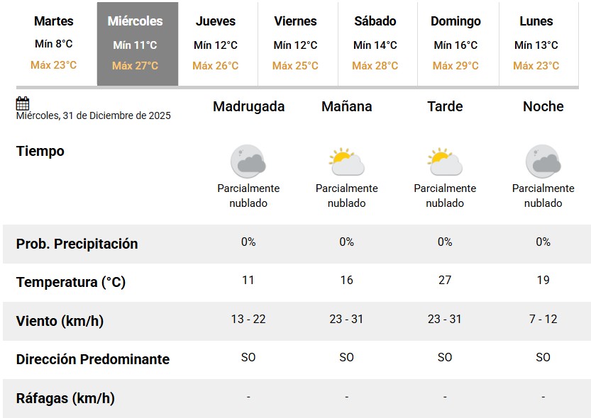 Para el 1 de enero la temperatura rondará entre los 12 y los 26º C.