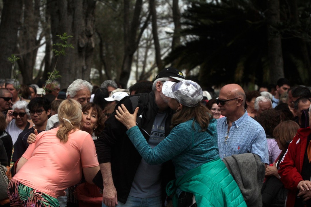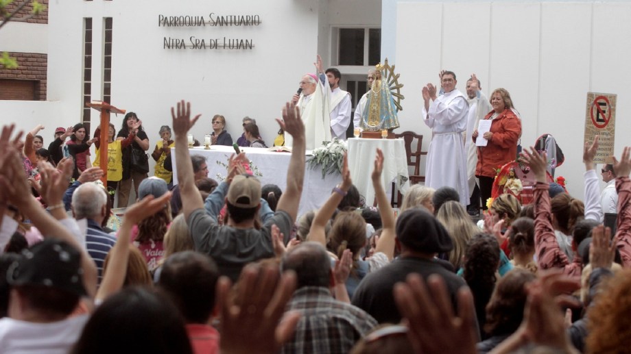 La misa central fue cálida y conmovedora, afuera de la parroquia Nuestra Señora de Luján. Miles de personas encontraron un lugarcito para sentarse en la plaza y escuchar la misa del obispo Fernando Croxatto, que comenzó luego de las 12.30.