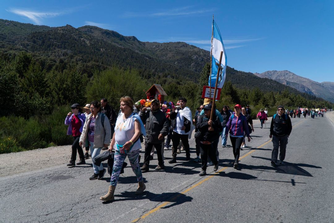 “Madre, somos tu pueblo, danos esperanza” era el lema de esta peregrinación que se realiza en Bariloche desde 1993 y este domingo movilizó a miles de personas desde distintos puntos de la ciudad que llegaron a pie y hasta montados a caballo.