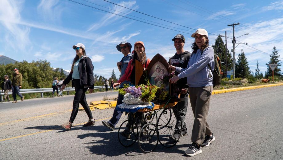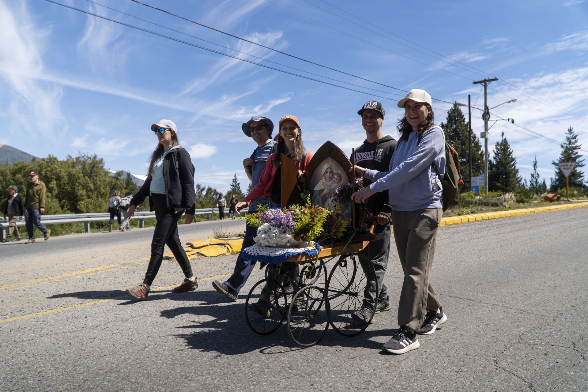 “Madre, somos tu pueblo, danos esperanza” era el lema de esta peregrinación que se realiza en Bariloche desde 1993 y este domingo movilizó a miles de personas desde distintos puntos de la ciudad que llegaron a pie y hasta montados a caballo.