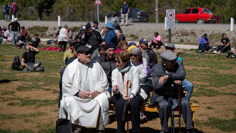 “Somos tu pueblo, un pueblo que confía, que se anima, que se juega, un pueblo que tiene sus raíces en la fe en Dios”, valoró monseñor Ares antes miles de fieles que siguieron desde el parque junto a la Ruta 82 la celebración, a pesar del penetrante sol que impactaba al mediodía.