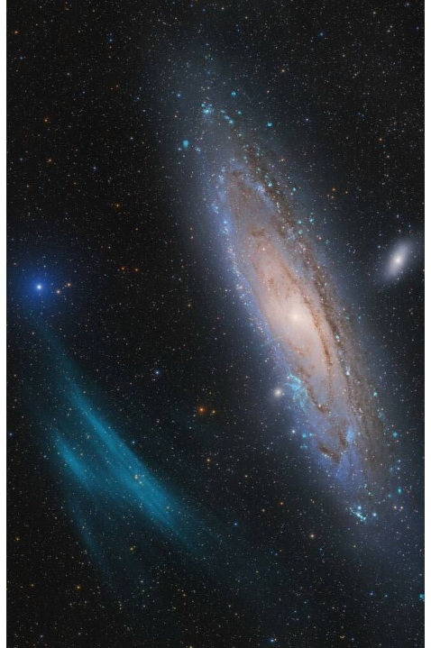 Su pieza se titula Andromeda, Unexpected (Andrómeda, inesperada) y fue descrita así: “¿Por qué ‘inesperada’? Bueno, tiene algo que ver con la brumosa nube azul que puedes ver en la parte inferior izquierda de su imagen. La galaxia de Andrómeda es la galaxia espiral más cercana a nuestra Vía Láctea y uno de los objetos de cielo profundo más fotografiados.