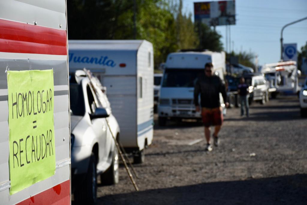 La agrupación «No a la homologación de tráileres y casillas rodantes» se movilizó esta mañana, desde los puentes que unen Neuquén y Cipolletti hasta la Casa de Gobierno. Piden que el gobernador, Omar Gutiérrez, interceda para poner un freno a la normativa que entrará en vigencia desde abril.