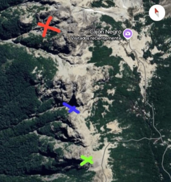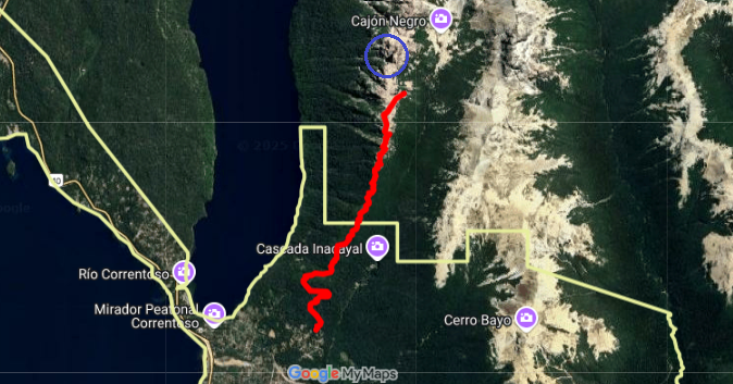 «Simplemente hay puntos rojos hasta lo verde», indicó en referencia a la imagen. Una vez finalizado el sendero, aseguró que: «La caminata es libre y la gente trata de encontrar lugares, lo que es un peligro porque son lugares de difícil acceso y con barranco de ambos lados».