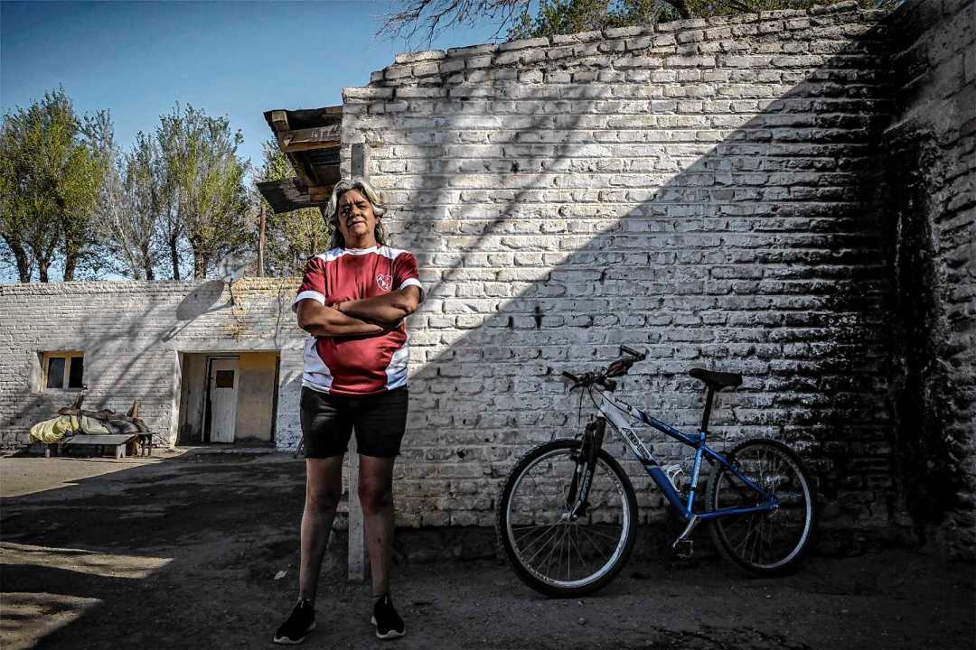 Fernanda posa con su camiseta del club sosteniendo la bandera de su pueblo. “Ella ya era una referente de la organización y en la defensa del territorio. Me impactó mucho la historia de reencuentro con su identidad mapuche. Y ella además de ser hincha del Depo Jacobacci, estaba haciendo un curso para ser juez de línea, ya había estado ahí participando en algunos torneos”, relata la fotógrafa.
