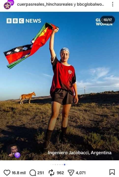 Detrás de la imagen seleccionada, está la historia de Fernanda Neculman, una hincha apasionada, una mujer con una historia y una identidad. Cuando la foto fue tomada por Carolina, Fernanda era una referente mapuche tehuelche en Río Negro y ahora es “werken” de la Coordinadora del Parlamento.