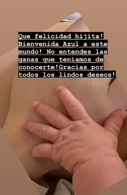 “¡Qué felicidad, hijita! ¡Bienvenida Azul a este mundo! ¡No entendés las ganas que teníamos de conocerte! ¡Gracias por todos los lindos deseos!”, escribió Dalma en una story de su cuenta de Instagram.