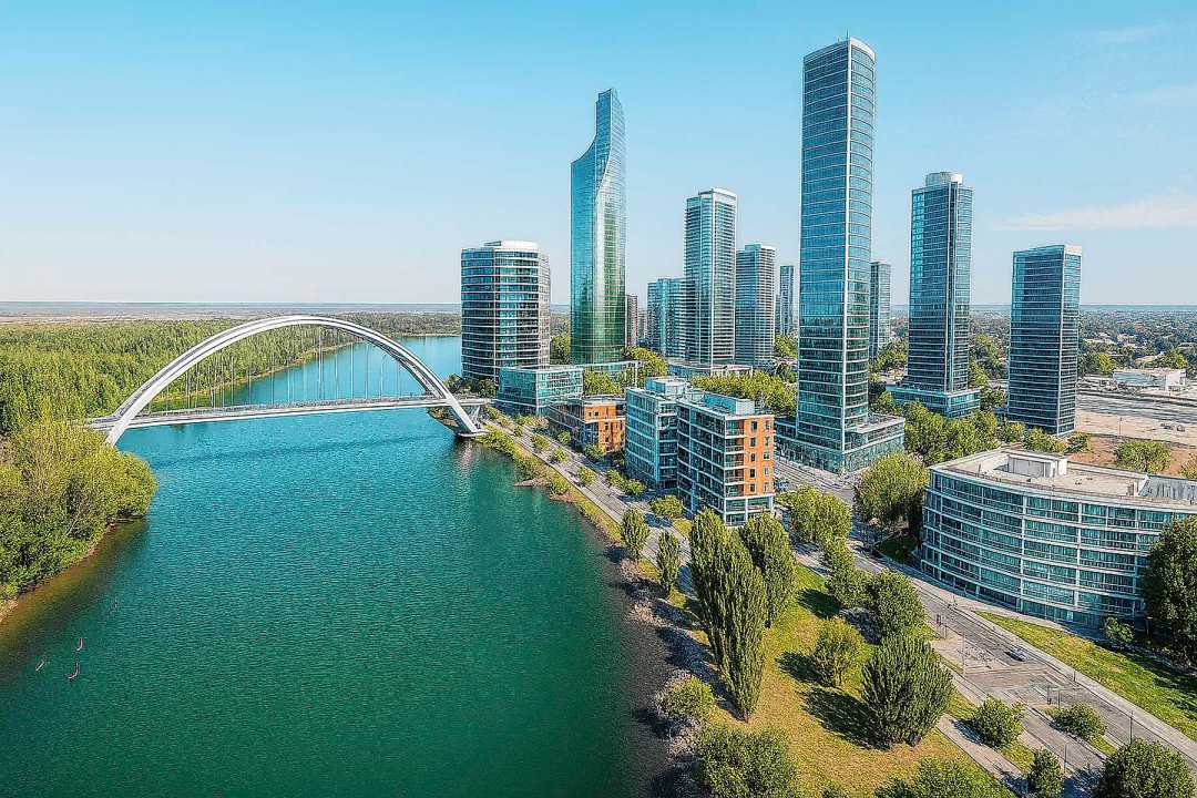 Las imágenes generadas integran todos estos enfoques, respetando edificios actuales e incorporando elementos futuristas como trenes eléctricos elevados, parques urbanos, arquitectura verde, puentes modernos y sectores industriales estratégicos que dialogan con la naturaleza.
