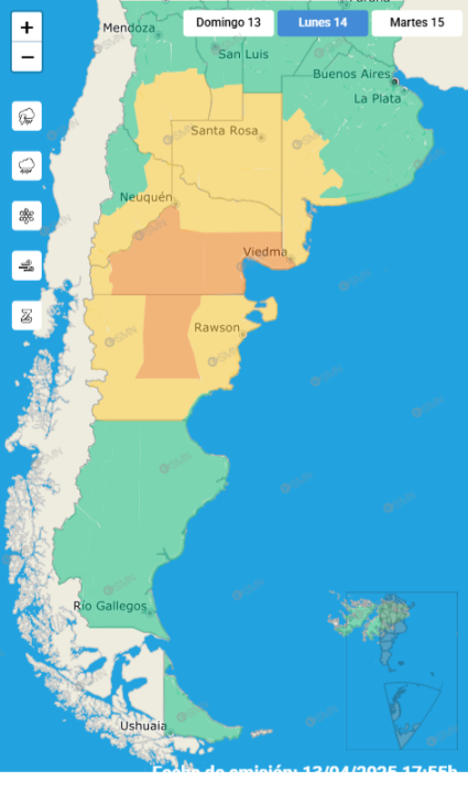 El Servicio Meteorológico Nacional emitió una alerta naranja por lluvias persistentes que abarca una amplia región de la provincia de Río Negro. La advertencia estará vigente durante toda la jornada del lunes, incluyendo la mañana, la tarde y la noche.