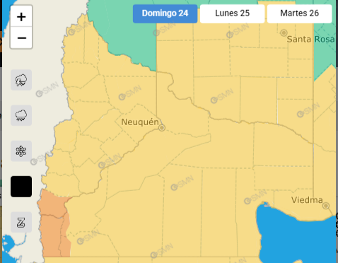 El organismo nacional pronosticó una jornada complicada para este 24 de agosto. Además de la alerta amarilla por lluvias para el sector cordillerano de Neuquén y Río Negro, comunicó que ambas provincias registrarán intensas ráfagas de viento que podrían traer complicaciones como voladuras de techos o caídas de postes y árboles.