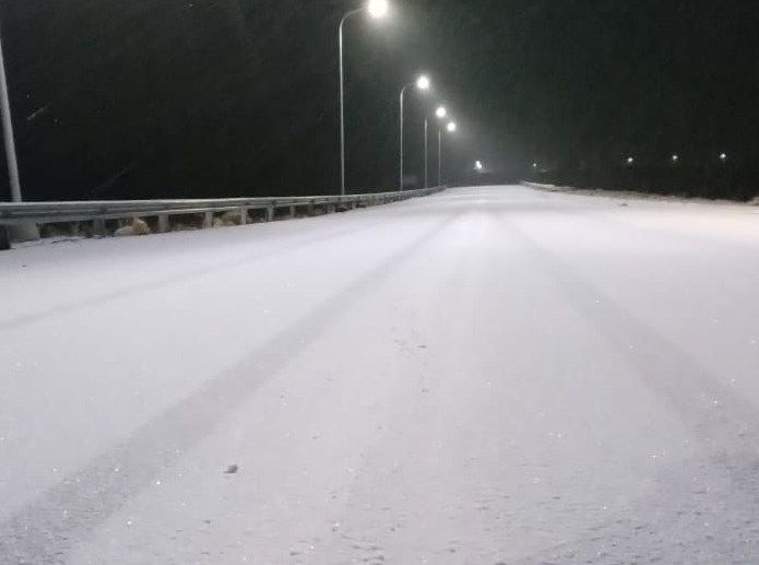 Hay sectores irregulares en los desvíos de obra y tramos poceados. La calzada presenta baja adherencia por la presencia de nieve. Los equipos viales trabajan en la zona realizando las tareas de despeje. La portación de cadenas es obligatoria.