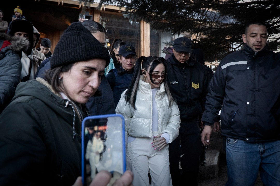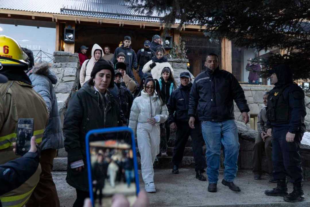 Rodeada de custodios y su equipo, Nicki Nicole llegó al cerro Catedral. Foto: Marcelo Martinez