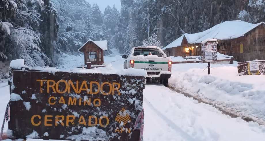 Según el detalle del organismo nacional, el camino a Cascada Los Alerces y cerro Tronador se mantiene cerrado por gran acumulación de nieve, con presencia de hielo en diferentes tramos.