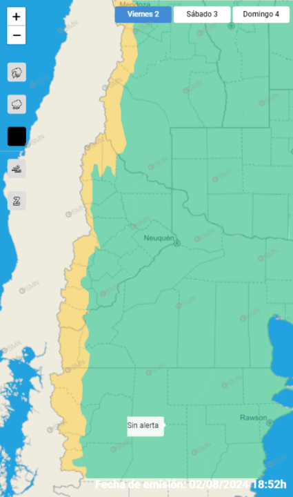 Una alerta por nieve parala cordillera de Río Negro y Neuquén rige este viernes 2 de agosto. La advertencia, emitida por el Servicio Meteorológico Nacional, abarca la totalidad de la zona andina de ambas provincias.