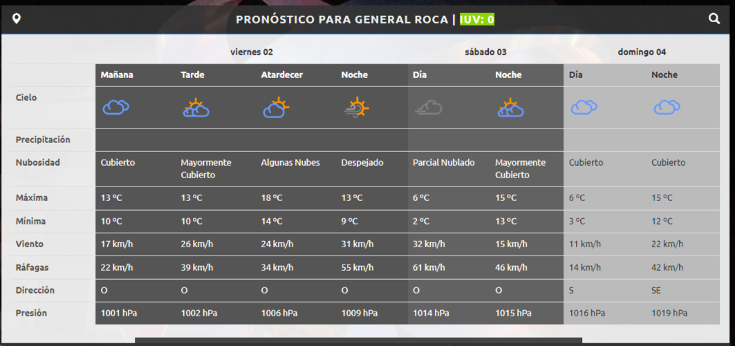 En la zona de los valles, el centro y el este de la provincia rionegrina las temperaturas máximas oscilarán entre los 15°C y 18°C con períodos de viento e inestabilidad.