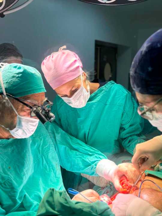 La otra novedad es que participó de la intervención el médico Claudio Angrigiani, un reconocido cirujano de Buenos Aires, quien marcó el comienzo de una nueva era en el uso de colgajos. El profesional llegó a la Patagonia para operar este jueves a la roquense junto a la cirujana mastóloga, Natali Grippo; de Roca.