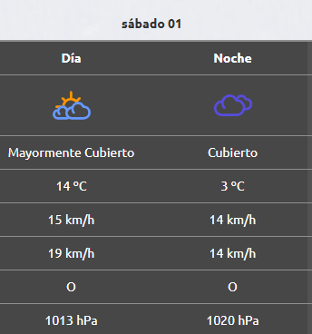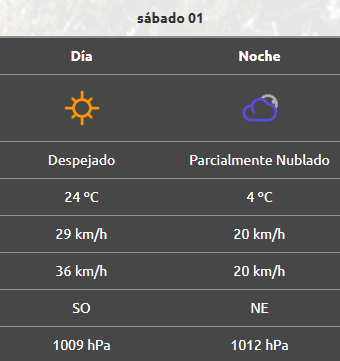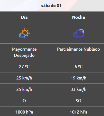 Por la noche la mínima será de 6°C, mientras que el viento permanecerá igual que durante la tarde, aunque las ráfagas alcanzarán los 36 km/h.