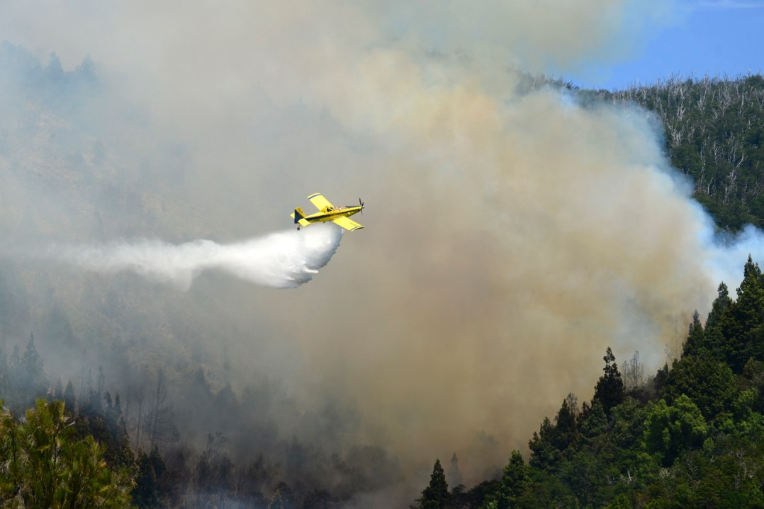 A unos 1.000 metros del acceso al lago Steffen, en la primera curva del Cañadón de la Mosca, se concentraba hoy una de las mayores actividades sobre una ladera colmada de cipreses y otras especies que ardían desde temprano y que intentaban ser combatidas por la Brigada Nacional del Servicio Nacional de Manejo del Fuego y aviones hidrantes que descargaban unos 5.000 litros de agua en cada pasada.